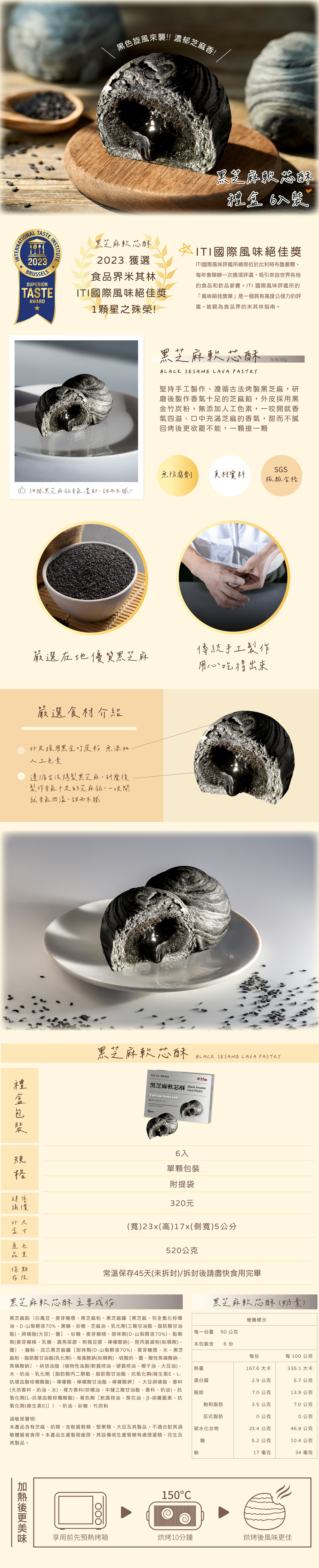 黑芝麻軟芯酥x6個