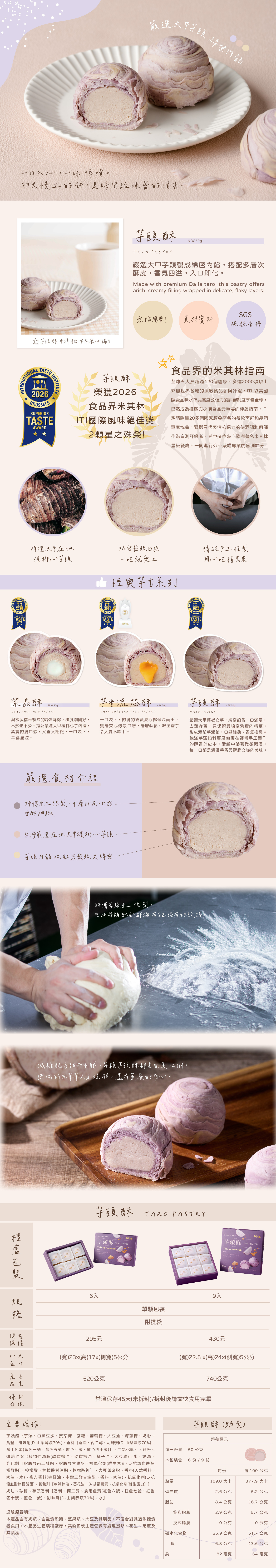 連續六年 得獎 芋頭酥 熱銷經典不敗款 嚴選優質食材 無添加防腐劑!